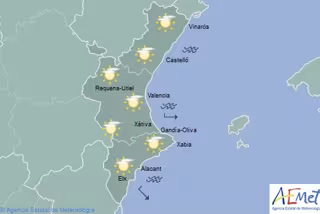 Así, las temperaturas mínimas se mantendrán sin cambios mientras que las máximas irán en ascenso y alcanzarán los 21 grados en Alicante, los 19 en València y los 17 en Castellón. Por su parte el viento soplará variable flojo.