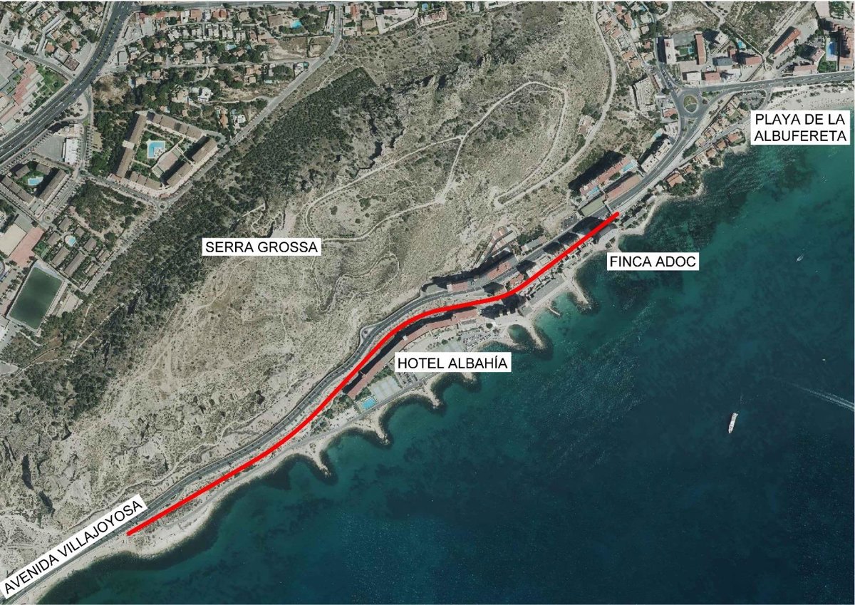 En ese sentido, la Conselleria de Política Territorial, Obras Públicas y Movilidad tiene previsto iniciar las obras a la altura del acceso al Hotel Abahía que cruza sobre la antigua línea ferroviaria, conectando con la vía ciclopeatonal existente del paseo de La Cantera, y se prolongará a lo largo de la plataforma del tramo de línea que ha quedado en desuso, hasta la salida del túnel junto a la Torre Vistamar (más conocida como 'El Barco') en la calle Sol Naciente en l'Albufereta.