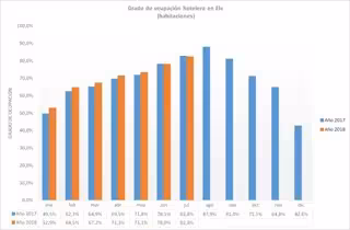 Los hoteles de Elche (Alicante) han registrado este pasado mes de julio una tasa de ocupación del 82,3%, una cifra que se sitúa medio punto por debajo del dato que se alcanzó en el mismo mes de 2017.