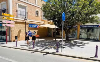 Aparte de incorporar en la oficina el correspondiente distintivo identificativo, el consistorio ha pintado de violeta los bolardos del lateral de la misma, ubicada en una de las típicas cuevas-vivienda de la ciudad situada en el número 23 de la calle Mdico Ballester, para potenciar su visibilidad desde el exterior.
