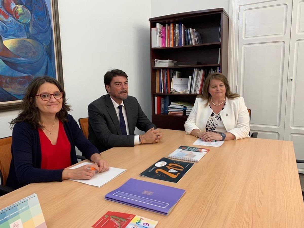 Mónica Oltra ha mantenido un encuentro de trabajo con la edil de Servicios Sociales del Ayuntamiento de Alicante, Julia Llopis, al que ha asistido también el alcalde de la ciudad, Luis Barcala.