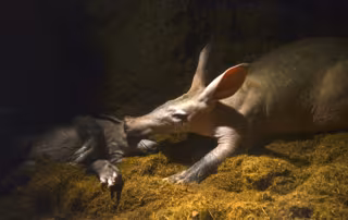 También conocido como cerdo hormiguero es un animal extraño y peculiar y muy desconocido aún por el público en general. Es la única especie del Orden de los Tubulidentados y se trata de un insectívoro de mediano tamaño que parece estar hecho a base de partes de otras especies, pues tiene orejas de burro, el cuerpo de un cerdo, la cola de canguro y unas grandes y fortísimas garras.