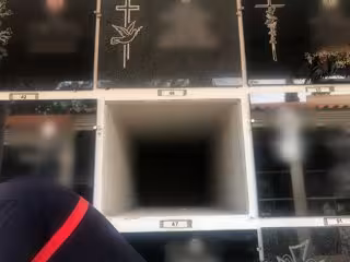Se trata del nicho 46 del cementerio, en el que supuestamente, según la lápida, estaba enterrado Aitor Irueta Oteiza, una persona que no figura en el Instituto Nacional de Estadística (INE), y que al final, este lunes se ha comprobado que no descansa en esta tumba, que está vacía.