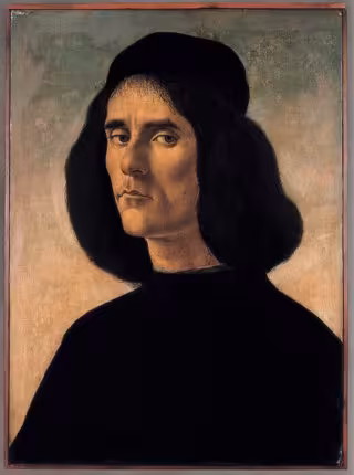 El retratado es Michele Marullo Tarcaniota (1453-1500), poeta, militar y humanista de origen griego que terminó viviendo en Florencia protegido por la familia Médici y rodeado de artistas y escritores. Se casó con la erudita poetisa Alessandra Scala. El 12 de abril de 1500, cuando regresaba a su casa de un viaje a Volterra, se ahogó cruzando el río Cecina a caballo, bajo una lluvia torrencial.