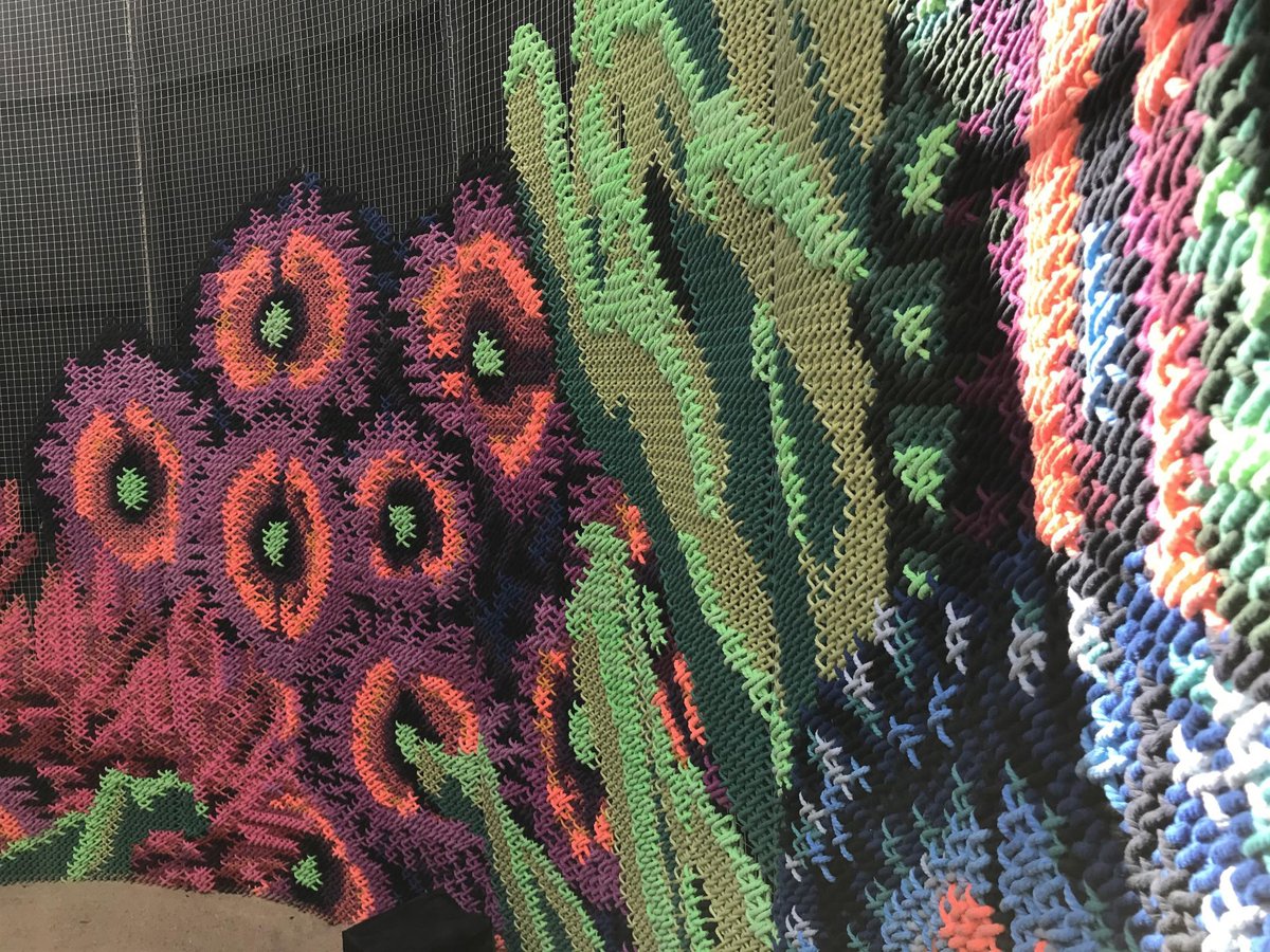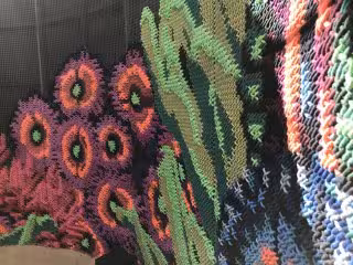 Montar este coral en el claustro del Centre del Carme ha sido una tarea complicada debido al fuerte viento que ha soplado estos días en Valncia. Según ha apuntado su director, José Luis Pérez Pont, ha sido necesario apuntalar puntos de la estructura. En total, son 20 paneles de madera revestidos con malla metálica por dentro, sobre la que está tejido el coral que crean un recorrido de 22 metros con un lado de entrada y otro de salida.