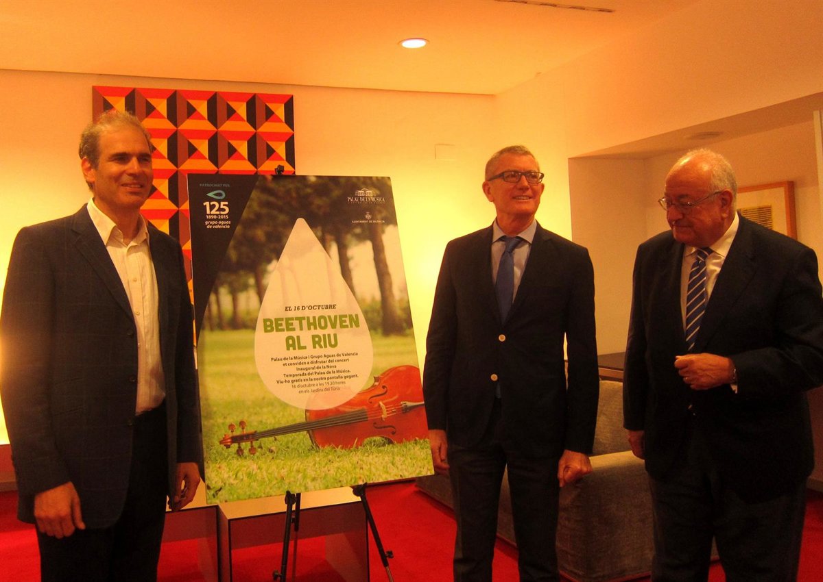 El Palau de la Música arranca su nueva temporada este viernes con un concierto subvencionado por Aguas de Valencia que se podrá disfrutar dentro y fuera del auditorio al mismo tiempo gracias a la instalación de 1.500 sillas y una pantalla gigante en el antiguo cauce del río Turia que llevarán 'Beethoven al riu' para aquellos que quieran seguirlo de manera gratuita.