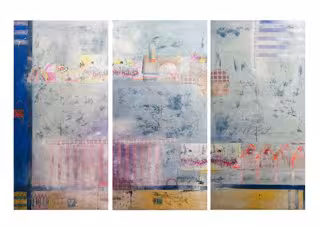 La artista ha incorporado a su pintura 'collages' de bocetos sobre viajes, escritos y retazos de vivencias que permiten al espectador "adentrarse en un delicado ambiente y disfrutar de un bonito paseo por su peculiar mundo de evocación y ensoñación".