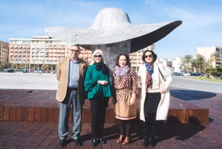 Hortensia Herrero, presidenta de la fundación que lleva su nombre y que compró la escultura para cedérsela a la ciudad, ha visitado la zona en la que se encuentra la pieza junto a la concejala de Cultura de la ciudad, Gloria Tello; Vicent Llorens, director general del Consorcio València 2007, y Marta García, jefa de servicio de Patrimonio Histórico y Artístico del Ayuntamiento de València.