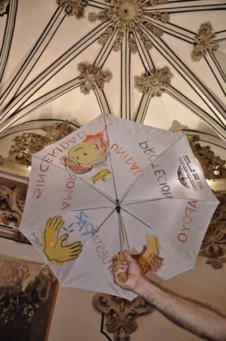 Los Paraguas por la Paz de Matt Lamb se iniciaron como una vía de ayuda a partir de un taller con niños que perdieron sus familiares más directos en los atentados del 11 de septiembre a los Torres Gemelas de Nueva York. Desde entonces, se han realizado actividades en 16 países, y más de 800.000 menores han pintando ya paraguas, destacando la última realizada este pasado mes de junio en una marcha multitudinaria que llegó hasta la Puerta de Brandenburgo de Berlín.