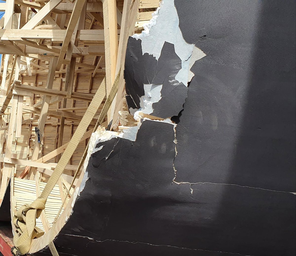 Imagen del desperfecto sufrido por una parte de la falla del Ayuntamiento de 2020 tras caer del camión que la trasladaba a la plaza municipal. - AYUNTAMIENTO DE VALNCIA
