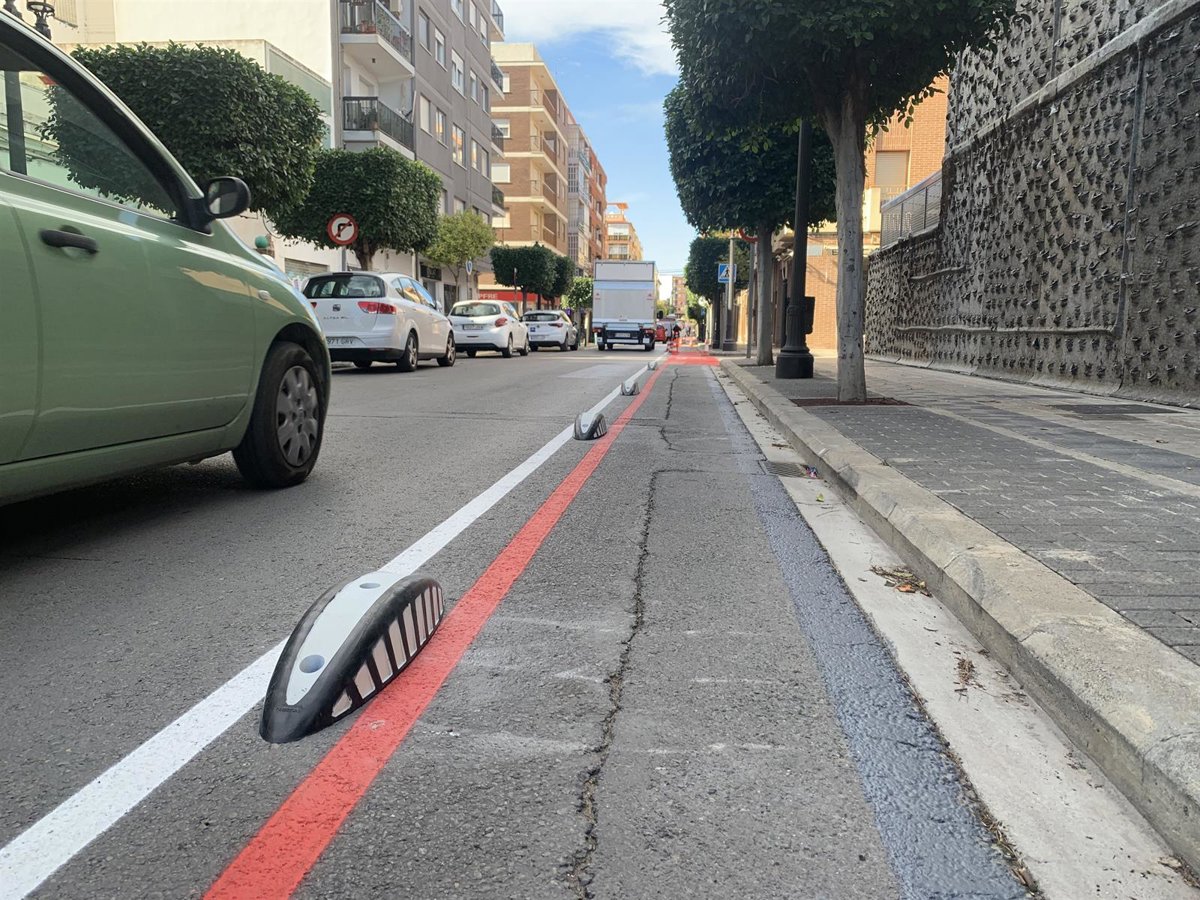 Al ubicarse en la misma calzada, el carril bici se ha diferenciado del tráfico motorizado con elementos separadores que aumentan la seguridad de los usuarios y usuarias.