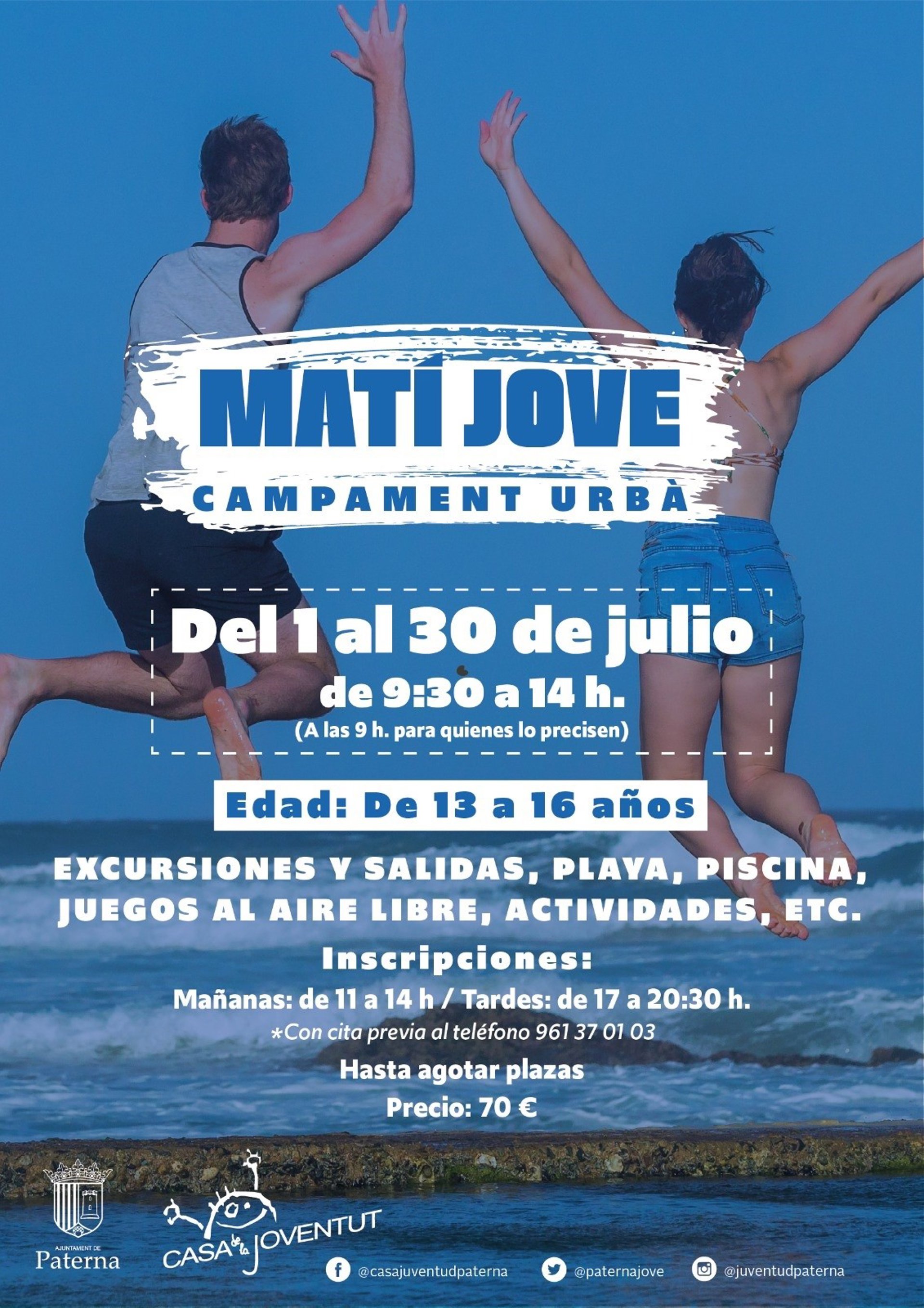 El Ayuntamiento de Paterna (Valencia), a través de la Casa de la Juventud, ha organizado durante todo el mes de julio, el campamento urbano 'Matí Jove' dirigido a jóvenes de entre 13 y 16 años de la ciudad.