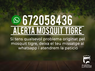 La Concejalía de Salud Ambiental del Ayuntamiento de Paterna (Valencia) ha puesto en marcha un servicio de Whatsapp para que los vecinos puedan transmitir incidencias relacionadas con la plaga de mosquito tigre. El número es 672 058 426 y la iniciativa pretende agilizar las peticiones de la ciudadanía.
