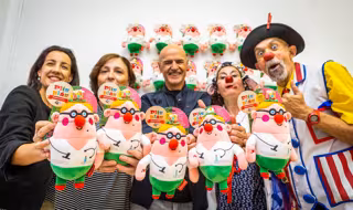 En este acto, Claramunt ha estado acompañado por Stocklina (Lina Vila) y por el gerente de Creaciones Euromoda, Javier Beneito, empresa que les ha ayudado a poner en marcha este proyecto. "Para producir el peluche hemos contado con el apoyo de la firma alicantina Famosa, que ha asumido todos los costes de su proceso de fabricación y transporte. Y para su distribución, Creaciones Euromoda lo venderá online en su web de forma exclusiva", ha destacado el director artístico de Payasospital.
