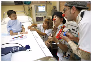 Con su música, sus marionetas y sus parodias, los payasos también dan apoyo psicológico a los familiares y acompañantes; igualmente colaboran facilitando que el niño ingresado esté relajado y distraído para que el personal sanitario aplique tranquilamente los tratamientos médicos que requiere.