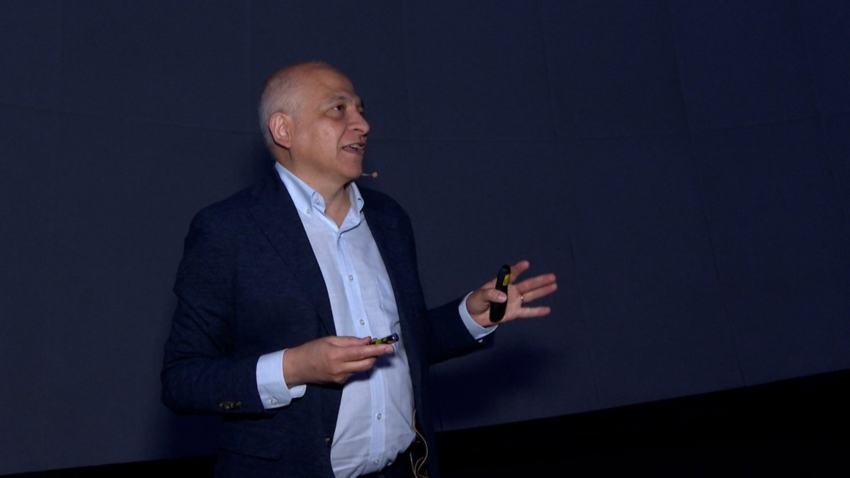 El astrónomo y experto de la ESA, Pedro García Lario, durante su encuentro con escolares en la sala de proyecciones del Hemisfèric - EUROPA PRESS TV