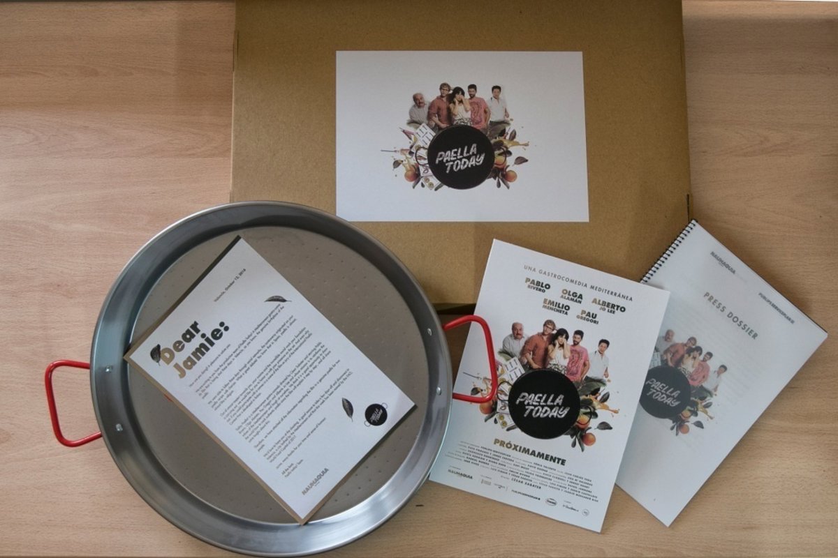 "Pensamos que es una buena oportunidad de mostrarle al mundo cómo se cocina la auténtica paella valenciana -ya que en el largometraje se explicará paso a paso su receta- y reírnos juntos de todo esto. Para ello, te adjuntamos toda la información acerca de la película en una auténtica paella para dos personas. Nos encantaría contar contigo para el rodaje. Una buena excusa para tomarte unos días de descanso y desconectar en Valencia, una ciudad bañada por el Mediterráneo y que esta misma semana ha sido nombrada, a través de la FAO, Capital Mundial de la Alimentación para 2017. Muchas gracias por tu tiempo y tu sentido del humor, Jamie", añade el texto.