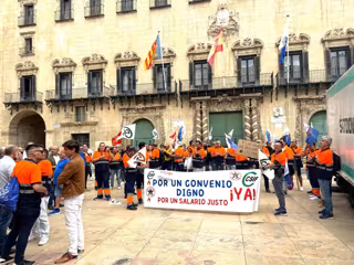 Trabajadores de Netial, concesionaria del servicio de limpieza y recogida de residuos en la ciudad de Alicante, se han movilizado este jueves en la plaza del Ayuntamiento, convocados por el comité de empresa, para protestar por la "falta de acuerdo" con esta compañía para firmar un nuevo convenio colectivo.