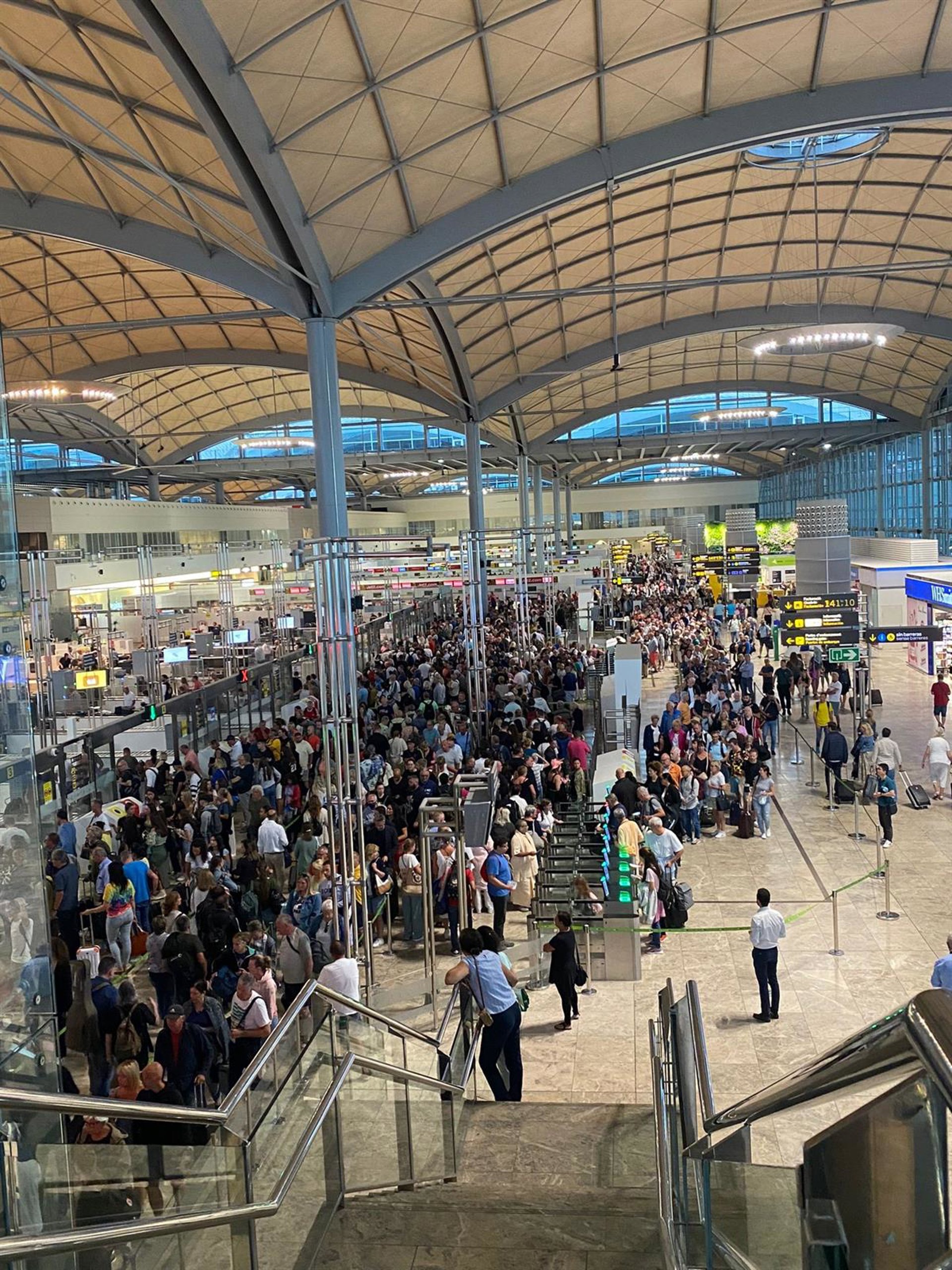 Imagen de colas en el aeropuerto de Alicante-Elche durante la huelga de vigilantes de seguridad. - CCOO