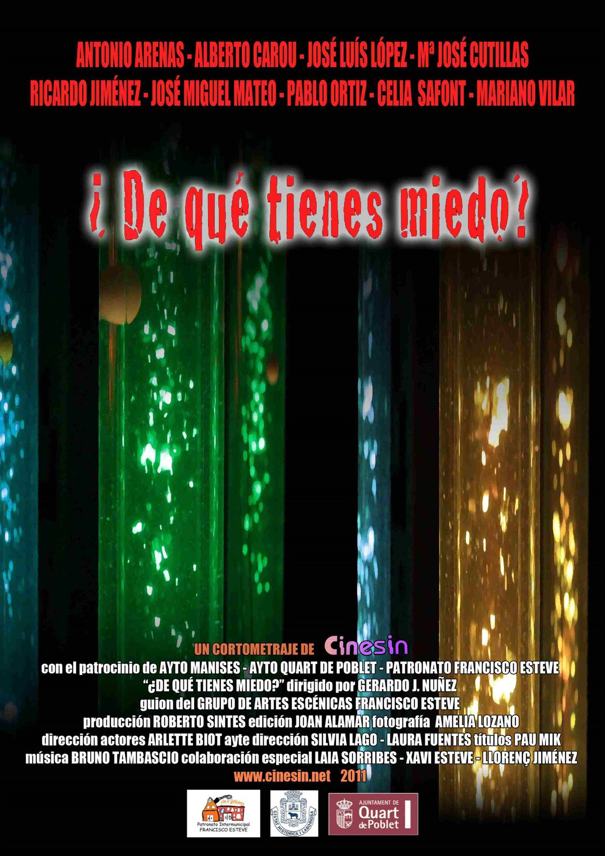 El Auditorio Germanías de Manises (Valencia) acogerá el próximo viernes, 25 de Marzo, a las 18.30 horas, el corto '¿De qué tienes miedo?', una cinta protagonizada por personas con discapacidad intelectual del centro ocupacional Francisco Esteve de Paterna y que cuenta también con la colaboración como extras, de usuarios del centro de Quart de Poblet. El documental que ha obtenido el primer premio en el Festival Cine Mobile de Sevilla.