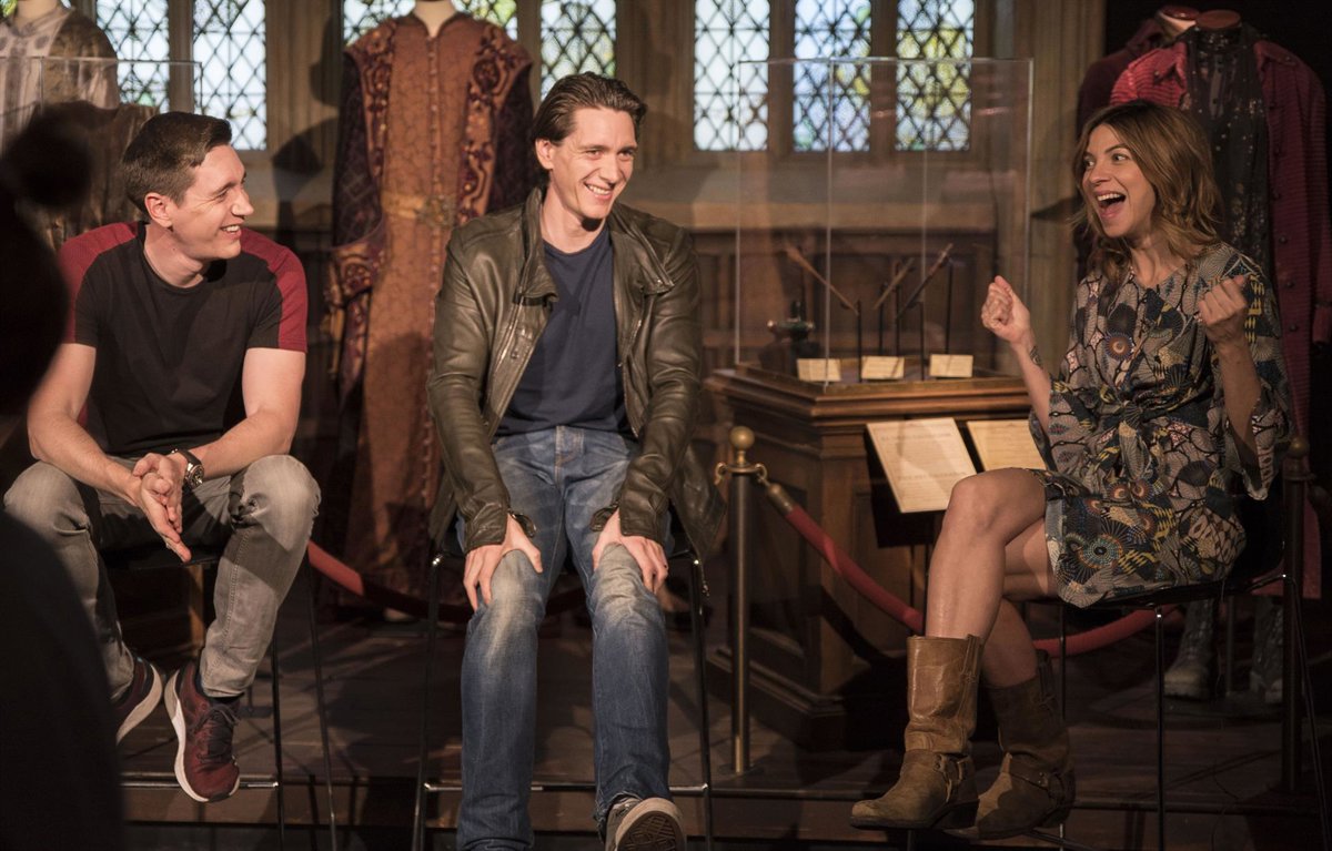 Los hermanos James y Oliver Phelps, que interpretaron a los gemelos Fred y George Weasley en la saga Harry Potter, y la actriz Natalia Tena, Nymphadora Tonks en las películas basadas en las obras de J.K.Rowling y Osha en Juego de Tronos, se encuentran estos días en Valncia con motivo de la exposición sobre el joven mago, que ha convertido la Ciudad de las Artes y las Ciencias en el universo de Hogwarts, aunque con una nueva escena que podrá verse por primera vez en España: trajes y atrezo de la última película en entrar en el mundo mágico, 'Animales Fantásticos: Los Crímenes de Grindelwald'.