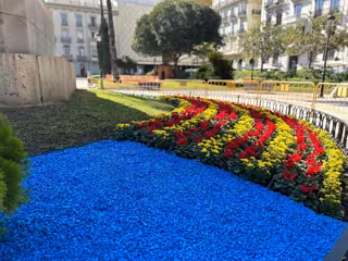 Piedras azules y flores rojas y amarillas decoran el Parterre para la ofrenda del 9 d'Octubre - AYUNTAMIENTO DE VALNCIA