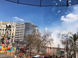 Así, al grito de 'senyora pirotècnica, pot començar la mascletà', los truenos y los petardos han comenzado a salir disparados durante más de cinco minutos por todo el perímetro de la plaza.