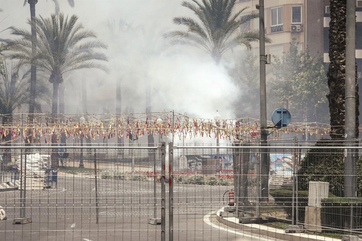 Imagen de la mascletá de Pirotecnia Crespo, la primera de la 36 edición del Concurso de Mascletás de las fiestas de Fogueres en Alicante, disparada el 18 de junio de 2025 - ROBERTO PLAZA / EUROPA PRESS