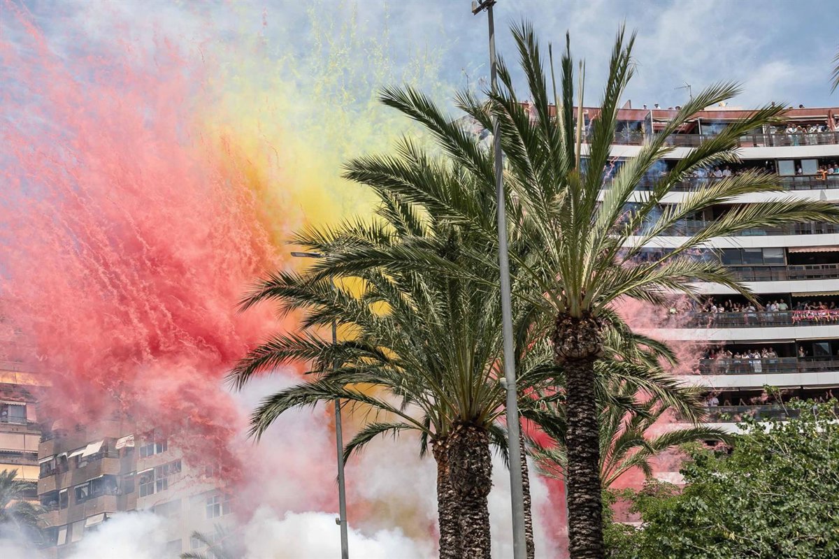 Al comienzo del disparo también ha captado la atención de los miles de espectadores con una sucesión de novedosos pitos tritonos. El disparo, en el que han ardido 150 kilos NEC, ha durado 6,21 minutos y el pico máximo de decibelios se ha situado en 124,5, detalla el Ayuntamiento.