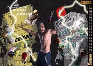 Según ha explicado, se trata de un calendario reivindicativo en el que mezclan fotos reales de bomberos con cómics. A modo de ejemplo, ha señalado que el mes de enero muestra a un bombero que sujeta dos edificios --un hospital y un colegio-- con el lema 'Se desmoronan nuestros pilares", en alusión a la educación y la sanidad.