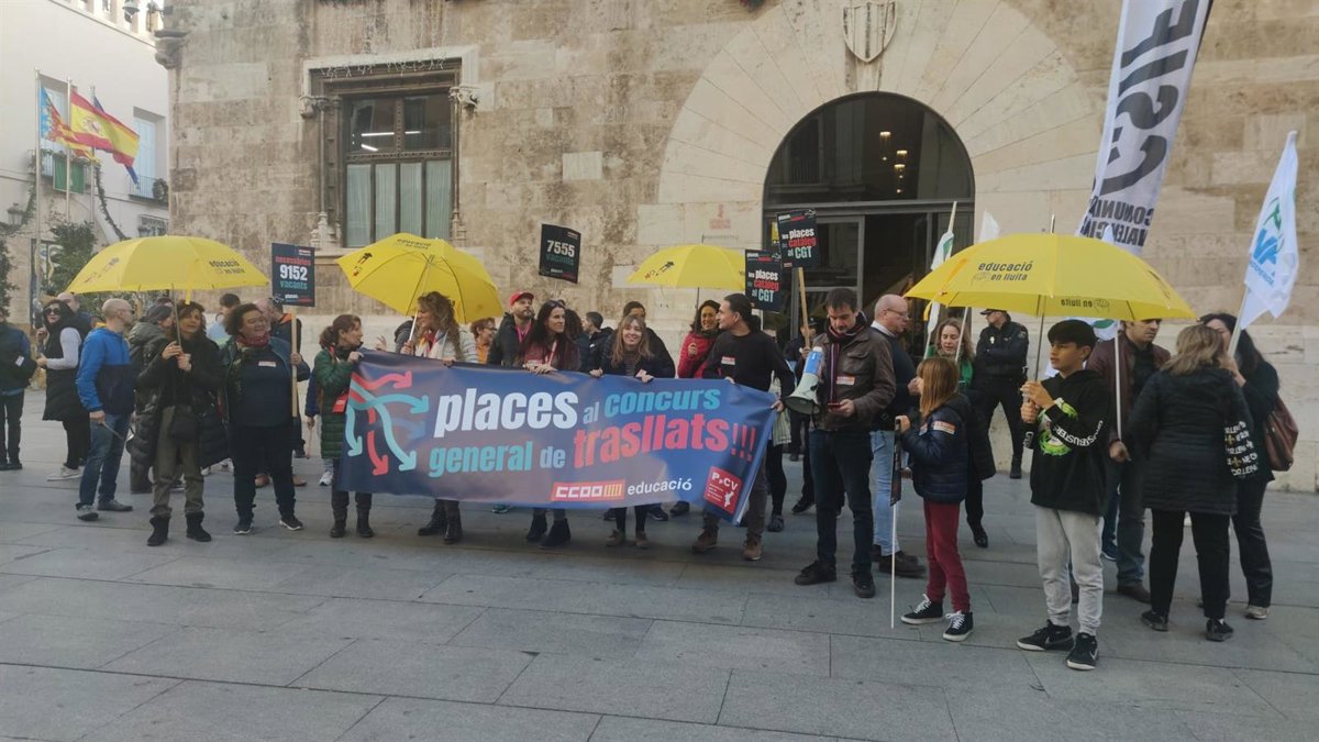 La Plataforma por la Catalogación de Vacantes se ha concentrado este viernes ante el Palau de la Generalitat en Valncia para exigir a la Conselleria de Educación que "todas las plazas de catálogo se saquen al concurso general de traslados". "Es lo que marca la ley".