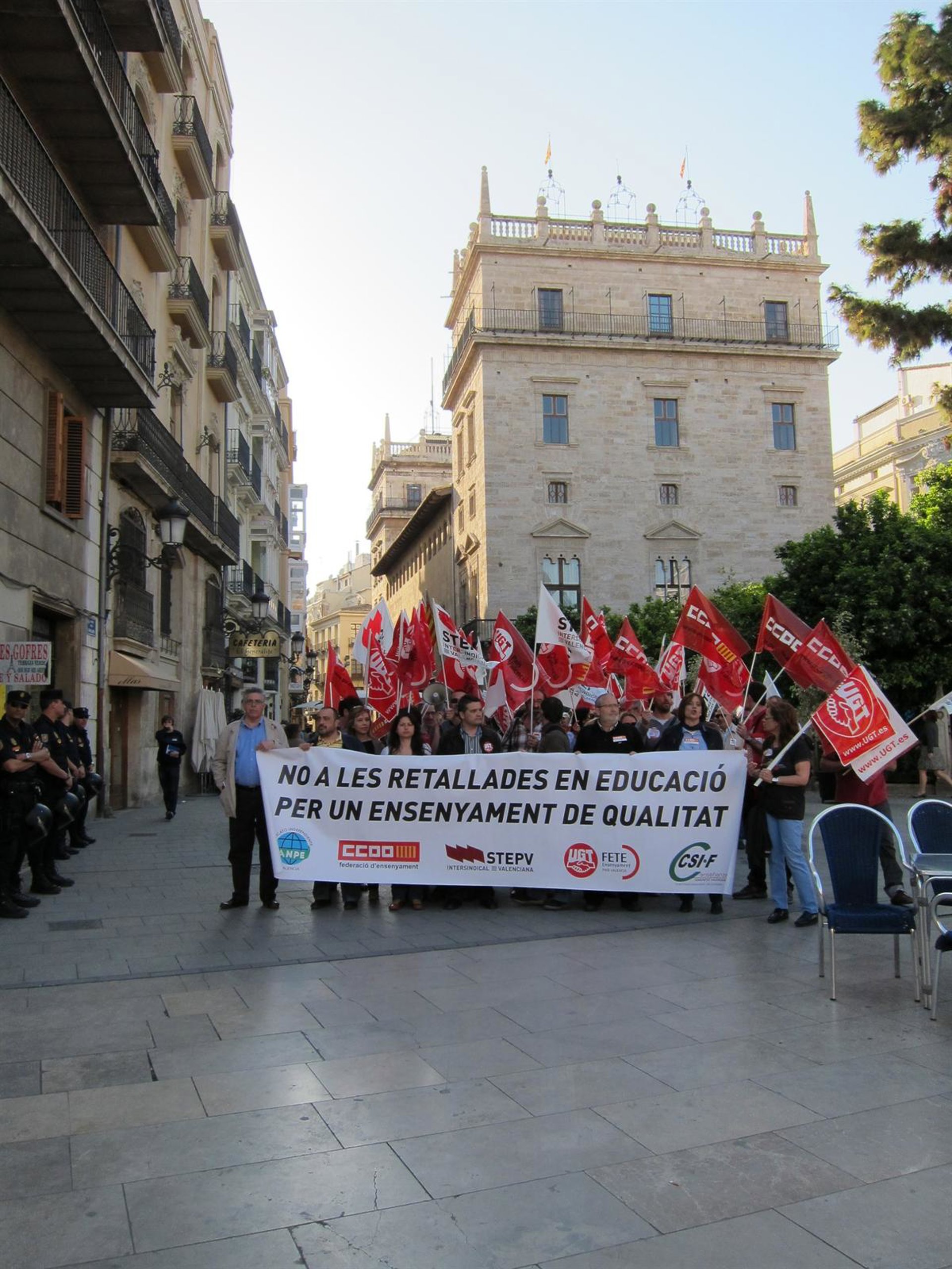 La manifestación --con el lema 'Per un ensenyament públic de qualitat. No a les retallades, sí al valencià'-- saldrá desde la plaza de San Agustín a las 18.00 horas y se suma a la serie de movilizaciones convocadas desde la plataforma sindical contra los recortes en la enseñanza pública.