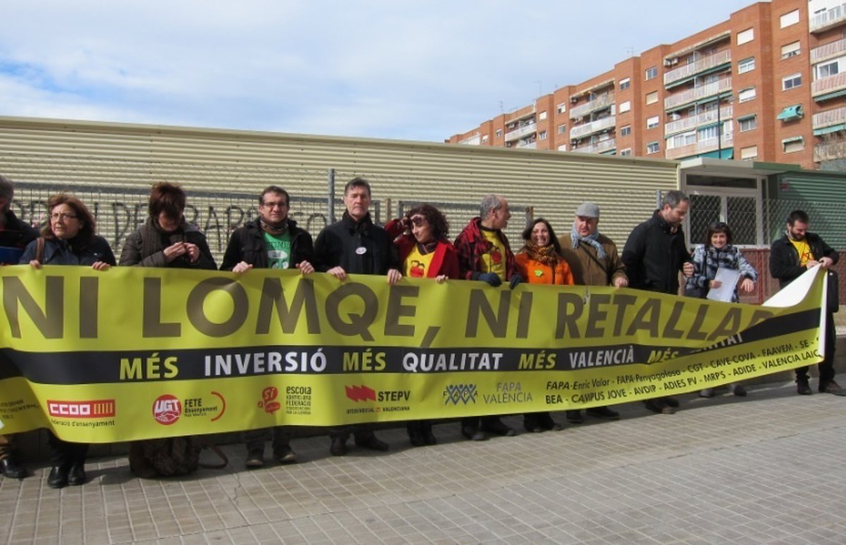 La presidenta de la Confederación de AMPA de la Comunitat Valenciana Gonzalo Anaya, Eva Grimaltos, ha leído un manifiesto en el que se critica el arreglo por considerarlo un "ataque" a la enseñanza pública, fruto de la "masificación por el aumento de ratios" y el recorte de plantillas docentes.