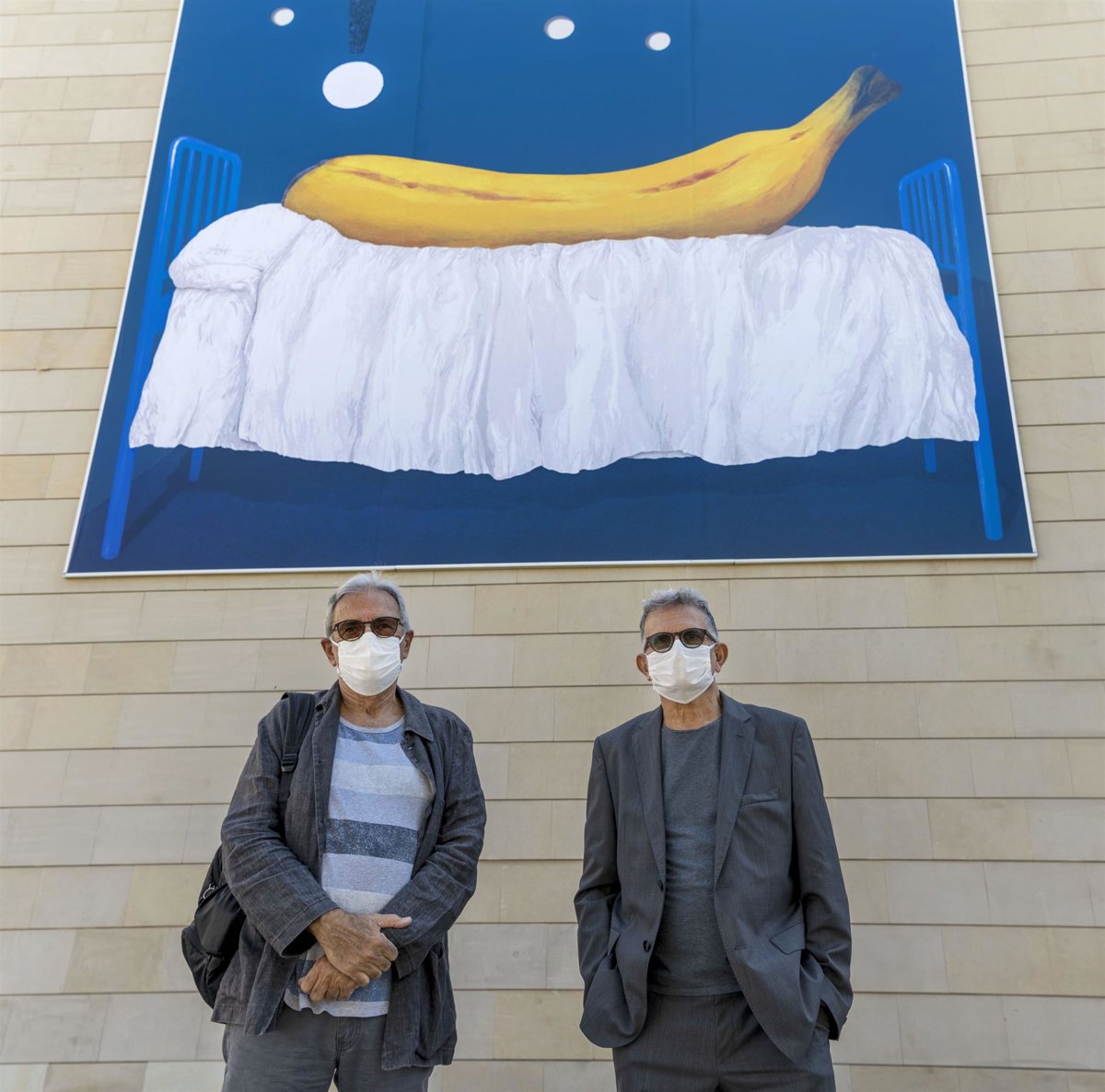 Un plátano gigante duerme la siesta en la fachada del Institut Valenci d'Art Modern (IVAM). La pieza, del artista Artur Heras, es una adaptación digitalizada de un lienzo que él mismo pintó en 1970, que versiona el "espacio interior" como iniciaron Kafka o Magritte.