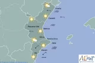 Durante la primera mitad del día se darán intervalos de nubes bajas, sobre todo al sur de la provincia de Valencia, y las temperaturas experimentarán pocos cambios, excepto en el interior de Valencia y Alicante, donde bajarán las máximas.