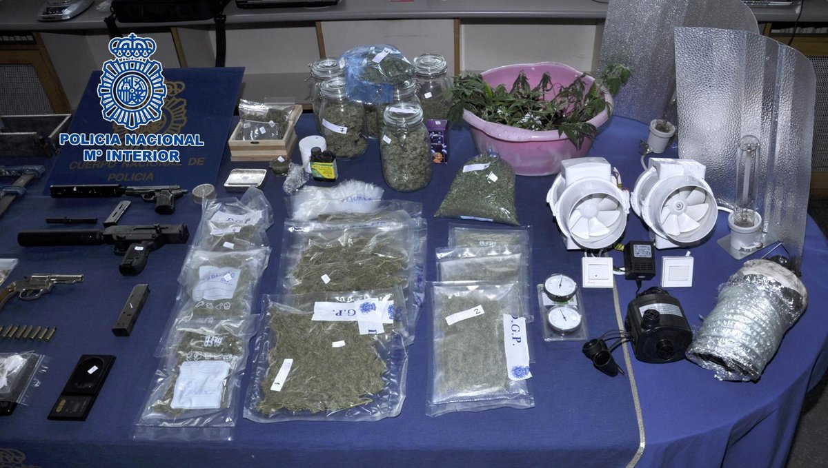 Se intervinieron tres armas de fuego y se desmanteló una pequeña plantación de marihuana y un laboratorio casero de adulteración de cocaína. La operación ha sido realizada por la Brigada Central de Crimen Organizado de la UDYCO Central de la Comisaría General de Policía Judicial.