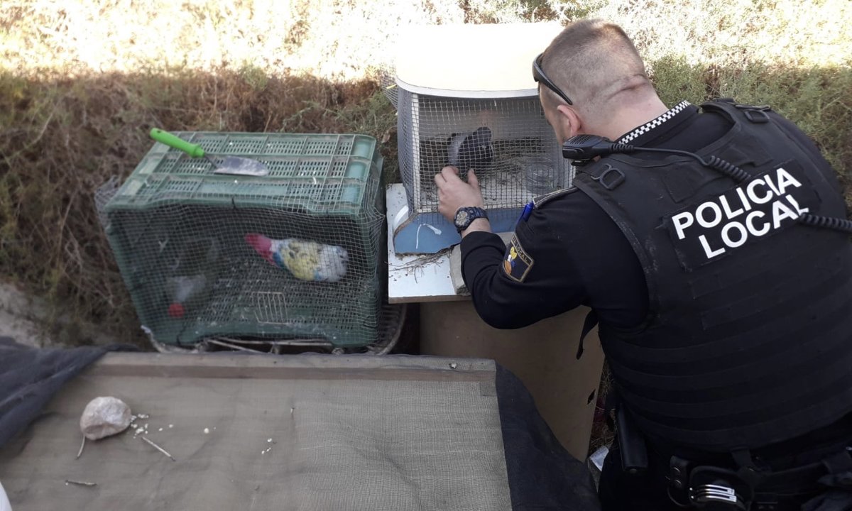 La Policía Local de Elche (Alicante) ha recuperado siete palomos de competición presuntamente robados por cuatro menores en la localidad, a los que obbservaron salir a la carrera de entre la maleza de un descampado situado en el camino viejo de Santa Pola, junto a la EL-20. Allí hallaron las jaulas con los animales, con sus respectivas anillas identificativas.
