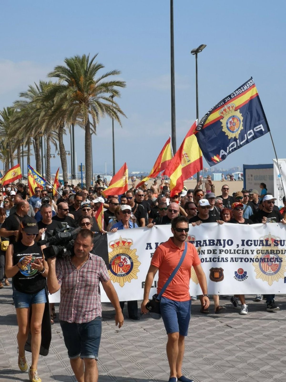 Justicia Salarial Policial (Jusapol), que aglutina a Policía Nacional y Guardia Civil, ha exigido este sábado en un recorrido por el paseo marítimo de La Malva-rosa (Valencia) "la verdadera equiparación salarial" de ambos cuerpos con las policías autonómicas, pues "cobran una media de al menos 600 euros más al mes", según denuncia la asociación en el manifiesto.