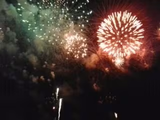 A partir de las 24.00 horas, la empresa Pirofantasia ofreció un montaje "muy acuático", en palabras del pirotécnico Carlos Caballer. Así, el castillo fue una sucesión de color y palmeras que se desplegaron sobre el agua y las estrellas.