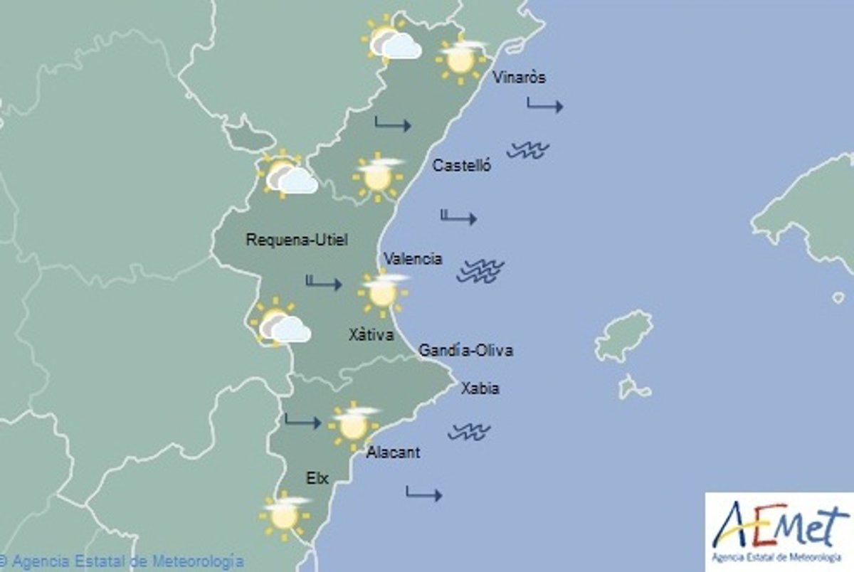 La nubosidad, que se dará principalmente por la mañana, disminuirá a poco nuboso o despejado a lo largo de la tarde. En el resto de la Comunitat se darán intervalos de nubes altas.