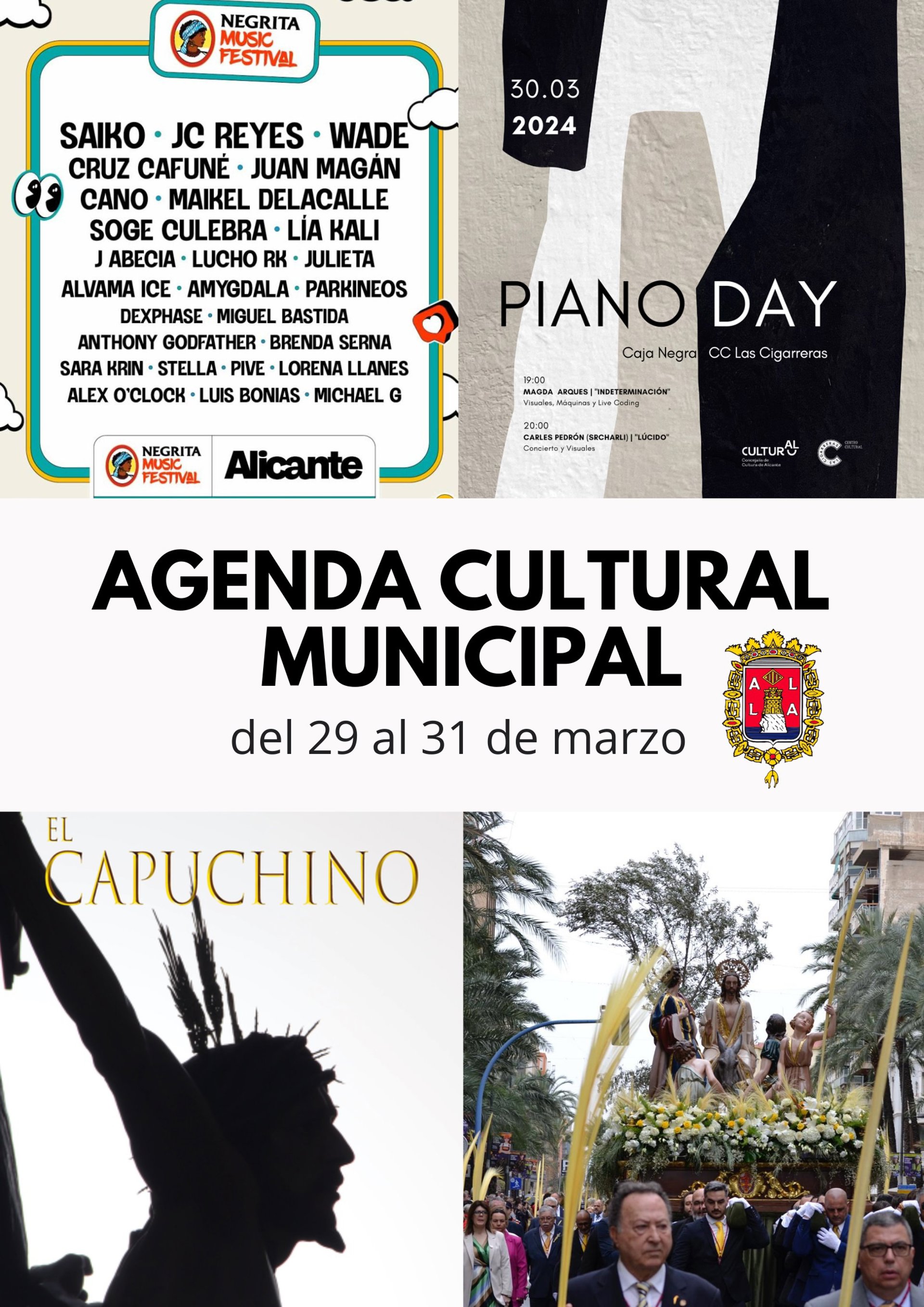 La agenda municipal de cultura y ocio en este último fin de semana de marzo en Alicante estará protagonizada por el primer festival de música de la temporada, el Negrita Music, que contará con rap, reguetón y latin-fusión. A él, se unirán conciertos de piano y otras propuestas artísticas, además de las procesiones de Semana Santa.