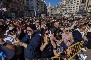 La primera 'masclet' del ciclo fallero de 2024 ha estado marcada por un silencio atronador en memoria de las víctimas del incendio de un edificio en el barrio valenciano de Campanar. De hecho, antes del disparo, la plaza del Ayuntamiento del 'cap i casal' ha enmudecido como muestra del dolor y la solidaridad que la tragedia ha despertado entre los valencianos y los muchos visitantes.