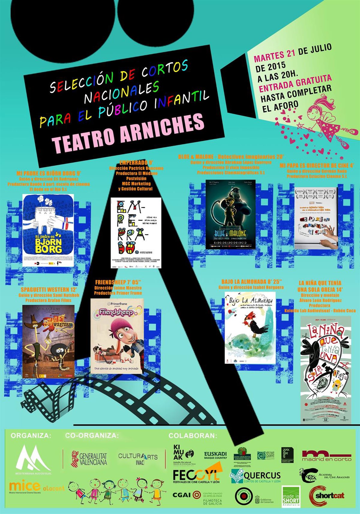 La primera temporada de proyección de cortometrajes en el Teatre Arniches (Alicante) se cierra este martes, a partir de las 20 horas, con una programación dedicada a los más pequeños. Se trata de una selección de cortos en las que se ensalza algún valor social y cultural.