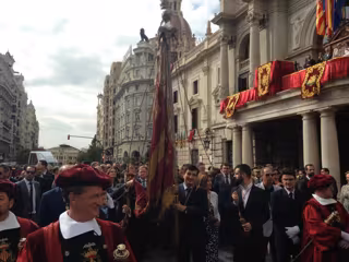 En esta ocasión, el portador de la Reial Senyera ha sido el portavoz de Ciudadanos (C's) en el Ayuntamiento de Valencia, Fernando Giner, al que han acompañado durante la celebración el primer edil de la ciudad y todos los concejales de su gobierno; el presidente de la Generalitat, Ximo Puig; la vicepresidenta del Consell, Mónica Oltra; consellers como la responsable de Sanidad, Carmen Montón, la de Justicia, Gabriela Bravo o el de Hacienda, Vicent Soler, entre otros; el delegado del Gobierno, Juan Carlos Moragues, o la síndica del PP en las Corts, Isabel Bonig.