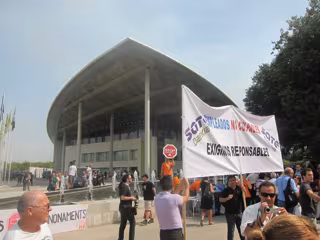 Miembros del sindicato SATE han desplegado una pancarta en la que podía leerse 'Empleados no culpables, exigimos responsables'. Según ha explicado el secretario territorial de Valencia del sindicato, Ximo Altur, muchos empleados "tienen problemas" ahora por culpa de "decisiones incorrectas y erróneas que se han tomado", por lo que exigen las responsabilidades oportunas "a quien las tenga".