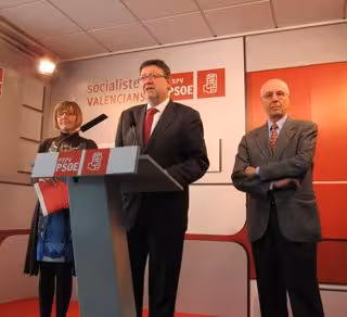 El secretario general del PSPV, Ximo Puig, acompañado de la secretaria de Vivienda y portavoz del área en el Grupo Parlamentario Socialista, María José Salvador, ha presentado en rueda de prensa esta propuesta de Ley de defensa de la función social de la Vivienda, que ya han registrado en las Corts, y que calculan que beneficiarán a cerca del 60 por ciento de los afectados.