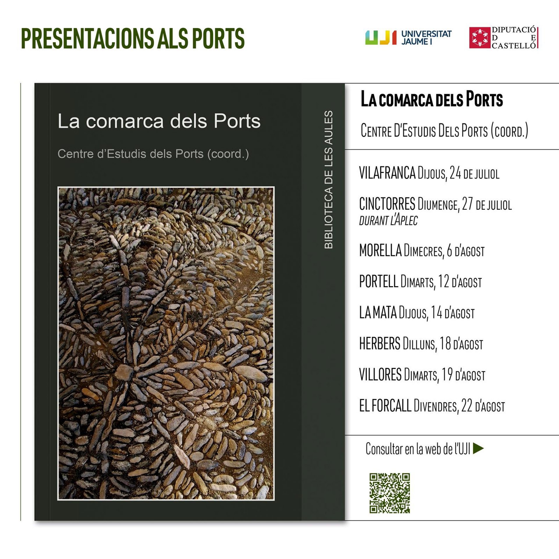 Publicacions de la Universitat Jaume I (UJI) y el Centre d'Estudis dels Ports han programado durante el mes de agosto un ciclo para presentar el libro 'La comarca dels Ports' en varios municipios de esta comarca castellonense.