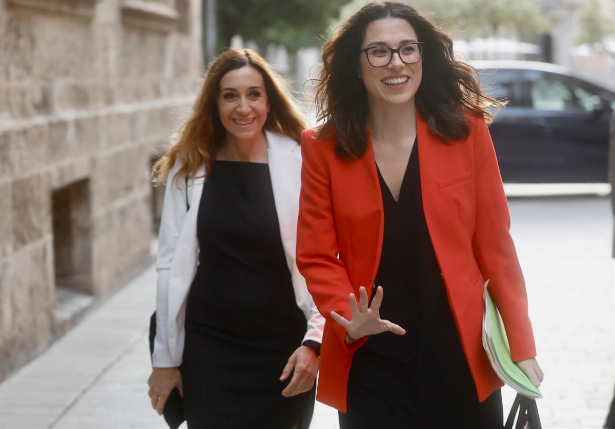 El pleno se ha reunido de manera extraordinaria este miércoles. Navarro, todavía en calidad de secretaria autonómica, ha llegado al Palau de la Generalitat junto a la vicepresidenta, Aitana Mas.