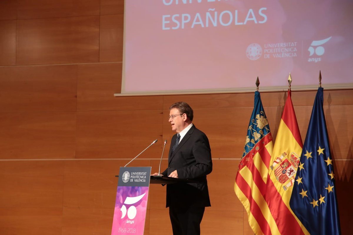 El 'president' también ha reconocido a la UPV en su 50 aniversario al señalar que ha sido "un factor clave en la modernización de la Comunitat" y será a partir de ahora "un catalizador imprescindible para el aterrizaje en la cuarta revolución industrial".
