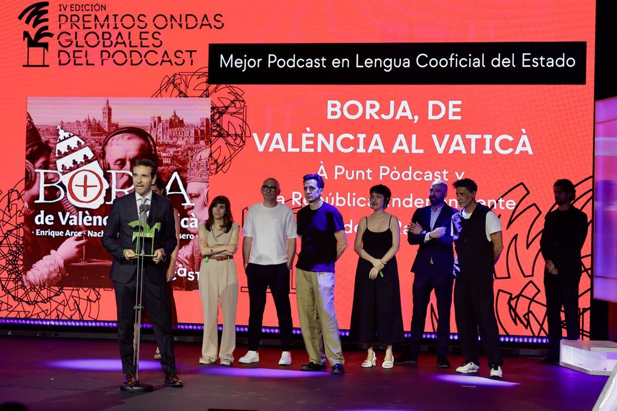 À Punt ha recogido el premio al mejor podcast en lengua cooficial del Estado por 'Borja, de València al Vaticà' en la gala de entrega de la IV edición de los Premios Ondas Globales de los Podcasts celebrada este miércoles en Madrid.